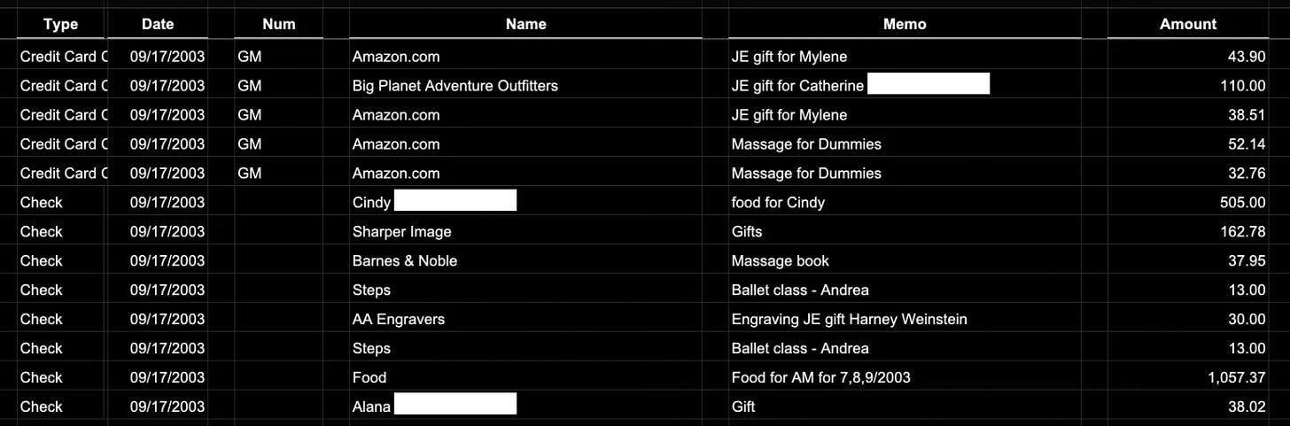 Also included were payments to Epstein victims:
